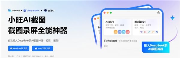 首款接入DeepSeek的AI截图神器—— 小旺AI截图更新至1.0.9版本 ,